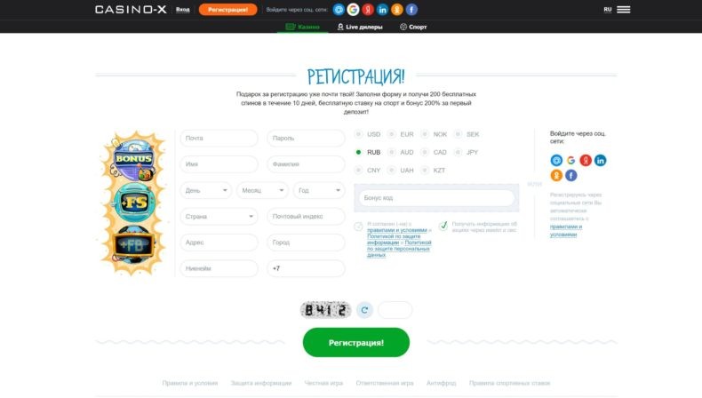 Casino X — регистрация на сайте